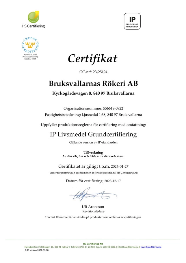 Vi röker våra produkter enligt gamla traditioner, utan rökaromer eller liknande.